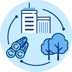 適材適所での木材利活用と川上から川下まで木のサプライチェーンを構築し、森と林業の活性を図ります。