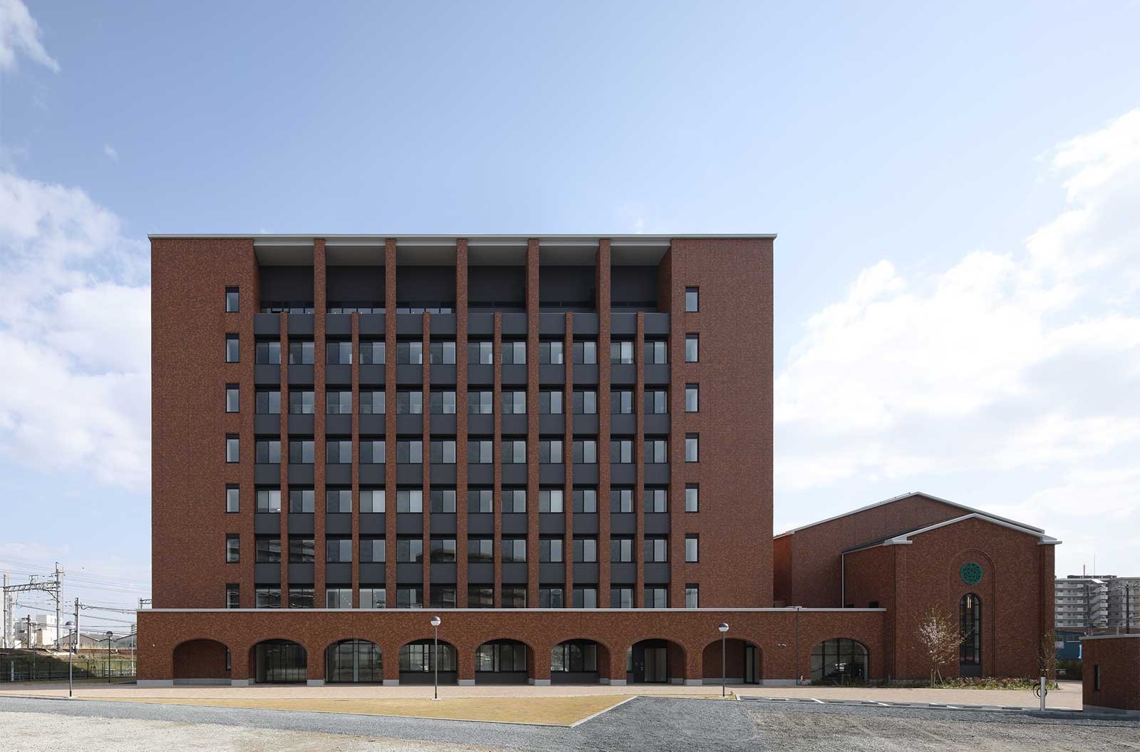 外観は、大学の精神性を継承するため、伝統的なタイルの素材感と構成の美しさを大切に、品格のあるファサードとしています。