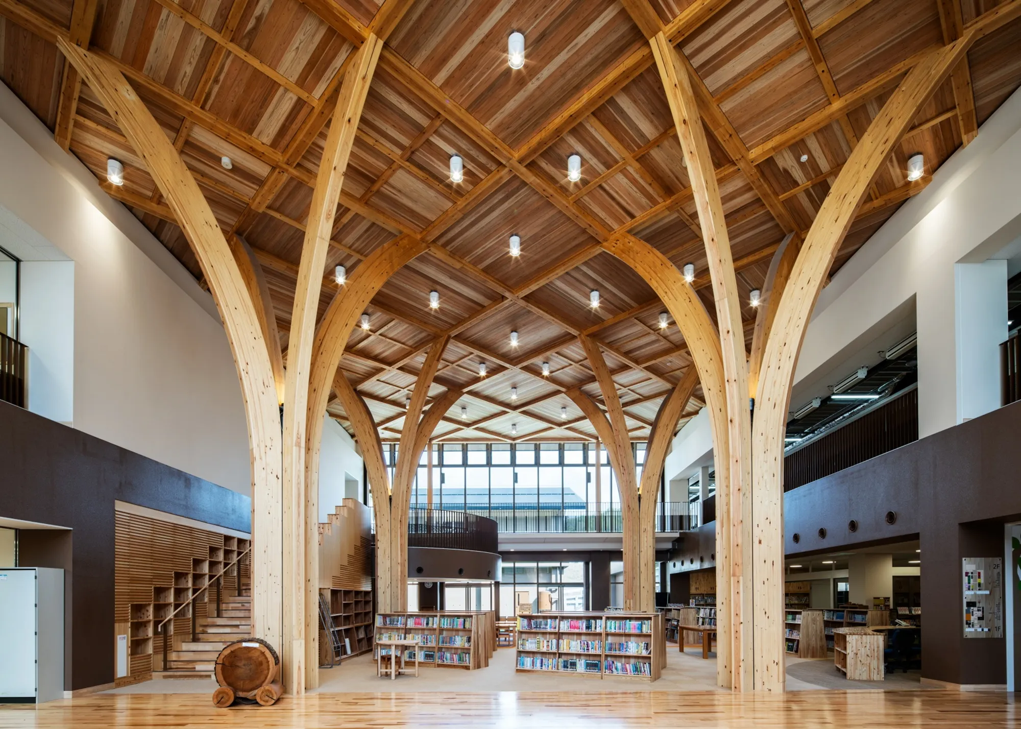 2010年の公共建築物等木材利用促進法や2021年の木材利用促進法の改正などを受け、地域産材の活用を前提とした中大規模建築への期待が高まっています。類設計室でも近年、京都市立京都京北小中学校(京都市右京区、2020年竣工)、松田町立松田小学校(神奈川県足柄上郡、2022年竣工)、京都市立栄桜小中学校(京都市伏見区、2025年竣工)など、教育施設を中心に木材を活用した中大規模建築の設計を手がけてきました。