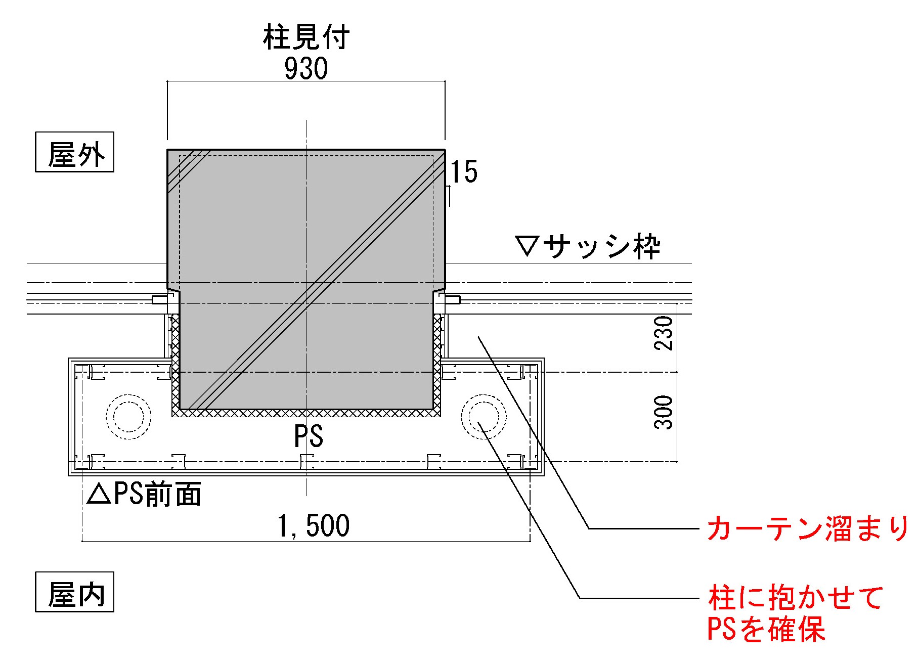 外部サッシュ周り詳細図
