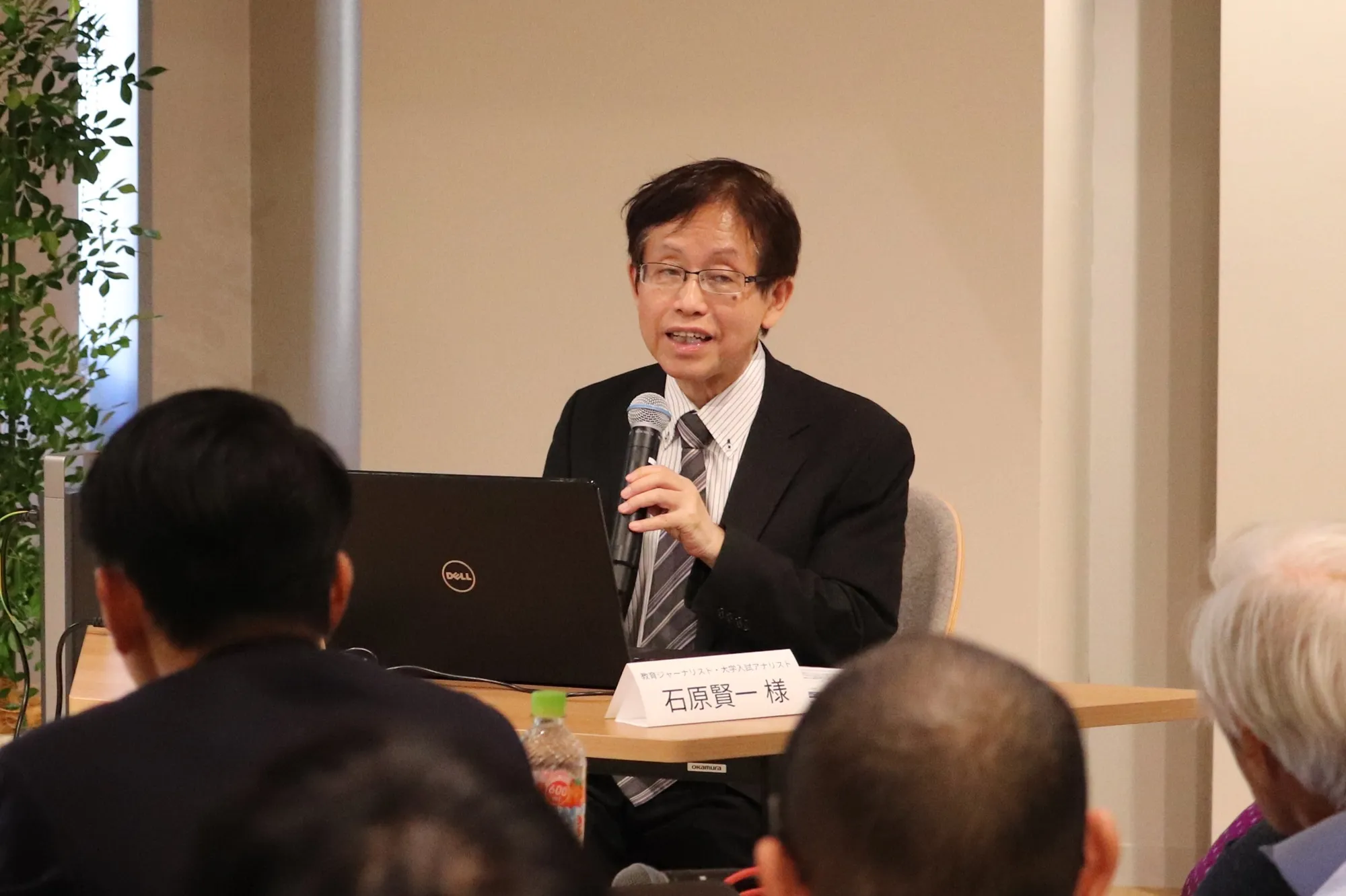 類設計室では、教育と社会の未来を展望し、私立大学の成長と発展に資する情報交換と議論の場として「私立大学将来構想研究会」を企画・主催しています。今回はその第5回として、教育ジャーナリスト・大学入試アナリストの石原賢一氏を迎え、「大学入試の現状と未来~大学入学者数40万人時代への提言~」と題し、10月9日に大阪と東京に約70名が集まり研究会を開催しました。会の後半では、パネルセッションを実施。講演者の石原氏も交え、登壇者に、大阪成蹊学園・理事長の北本暢氏、KEC教育グループ・執行役員・事業本部長の宮部尚氏、京都橘学園・専務理事・法人事務局長・財務部長の足立好弘氏、類設計室・教育事業部・類塾プラス・進路担当の永田剛。モデレーターに大手前学園・常務理事の高本進氏につとめていただき、意見交換を行いました。
