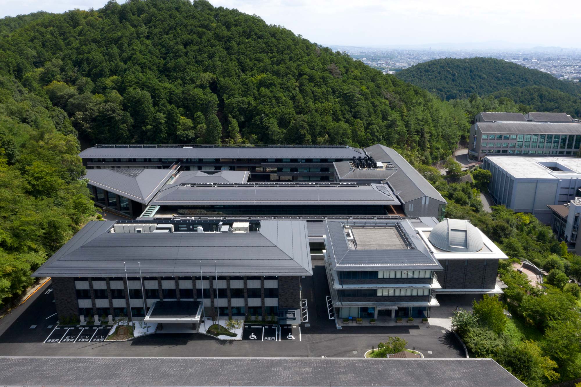 歴史ある旧本館の外観、京都産業大学の精神性を継承するために、新本館の外観は、旧本館の佇まいを継承し左右対称のデザインとしています。また、旧本館のエントランス空間を印象付けていた大庇と前庭を、新本館でも同様のデザインを継承し、エントランスには京都産業大学の歴史と建学の精神を享受できる記念ホールを設置しました。煉瓦建築が建ち並ぶ周辺建物と調和するよう、建物四隅の外壁や柱には煉瓦と同じ素材、色彩を再現したタイルで仕上げ、景観の統一性を実現しています。