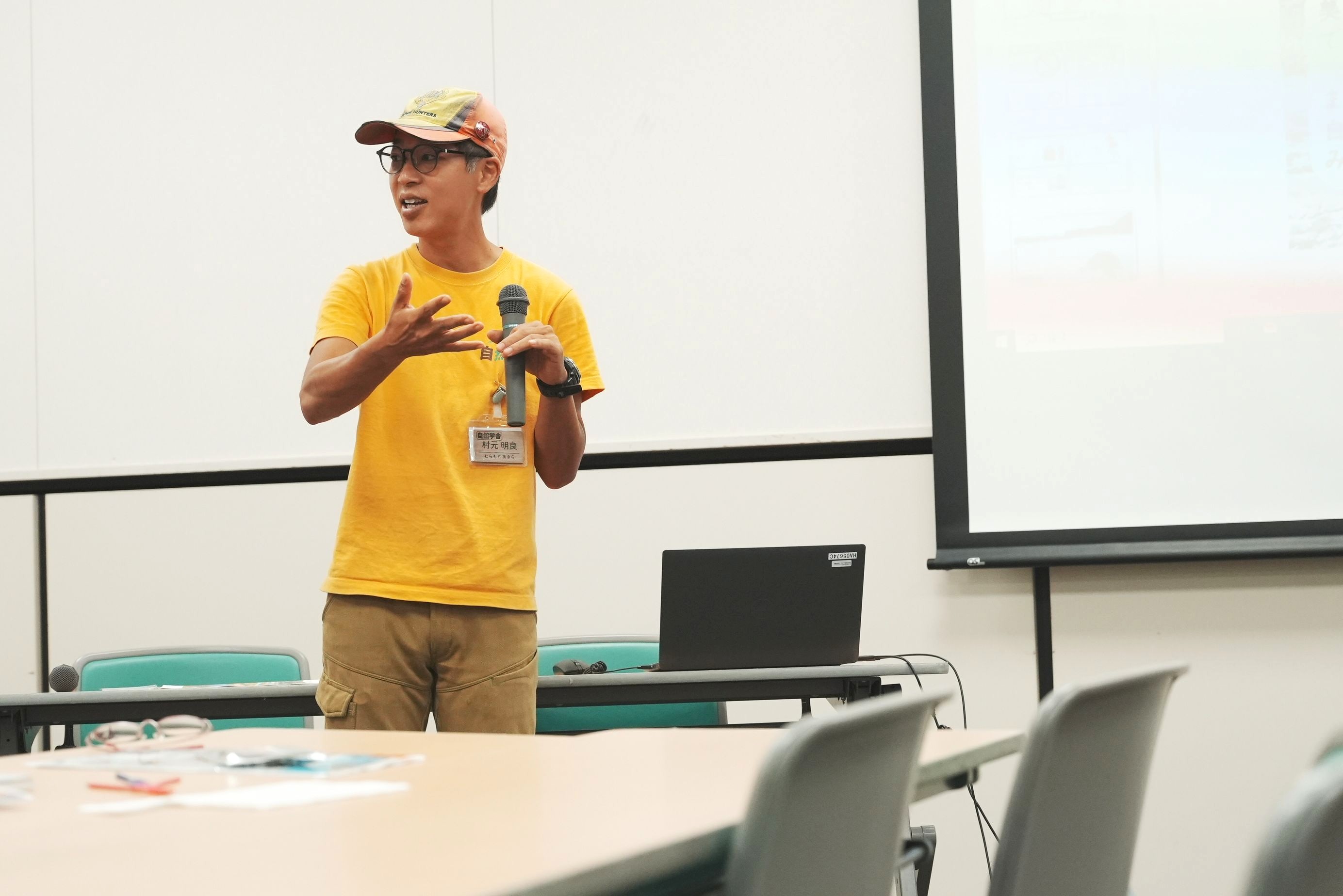 弊社より登壇した自然学舎の講師を勤める村元明良(写真の黄色いTシャツの人物)は、淀川の歴史を遡りながら先人たちのみんなの暮らしを守るための工夫や知恵について伝えました。大雨が降ると洪水が起きてしまうという一面もありながら、車がない時代の京都府と大阪府をつなぐ高速道路の役割をもち、人々の生活にはなくてはならなかった淀川。歴史を遡り当時の人々の暮らしを想像していくことで、普段見慣れた地元の風景も見え方が変わってきます。今回のようなイベントでの経験を大切にすることで、地域への関心を一層深め「淀川愛」を豊かに育むことができると村元は語りました。